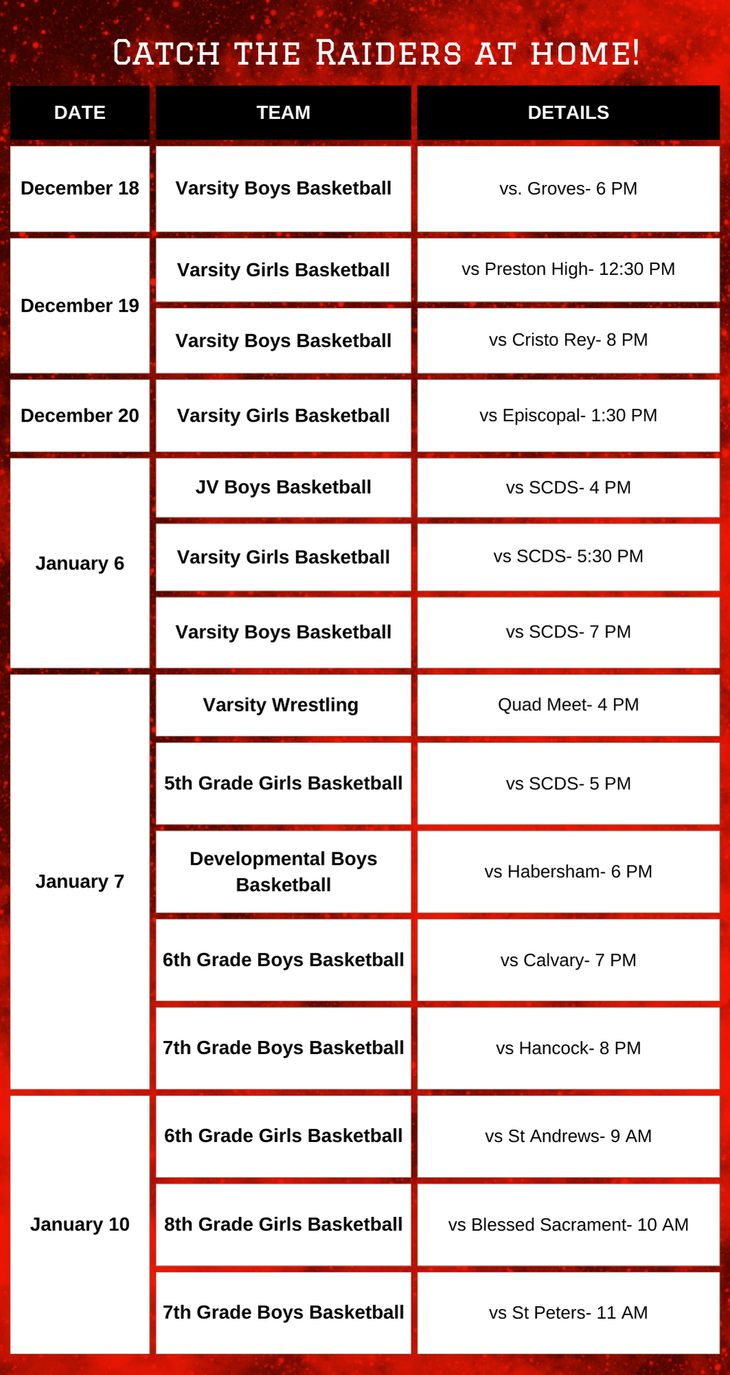 TUES, DEC 16, 2025- Reading Raiders