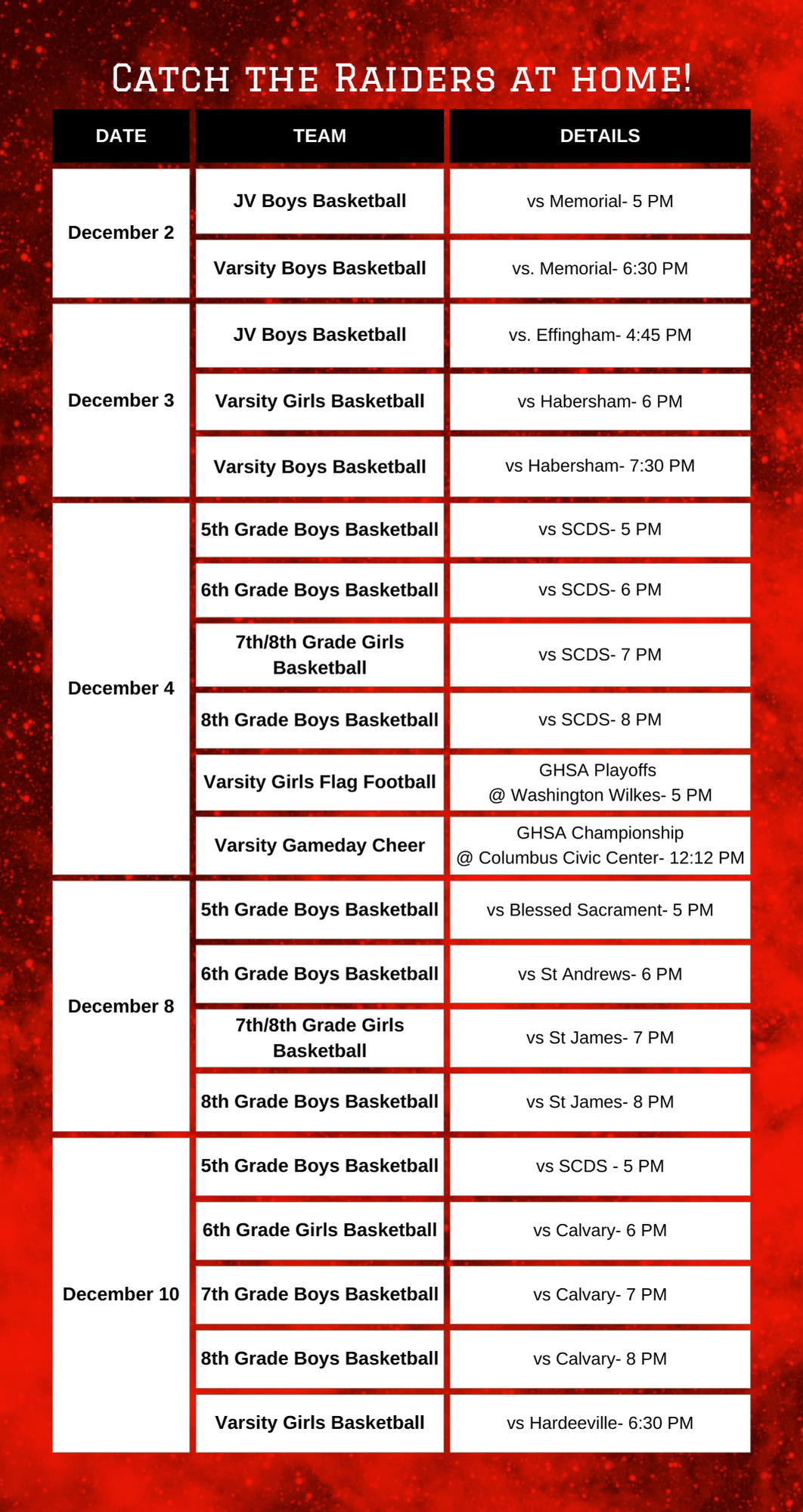 TUES, DEC 16, 2025- Reading Raiders